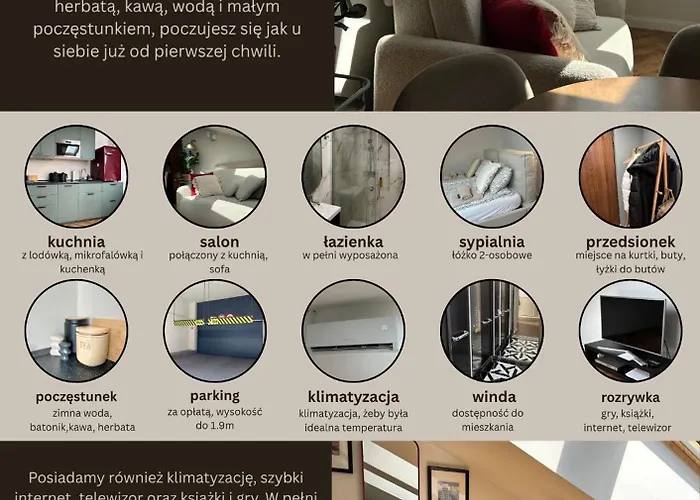 Los huéspedes pueden disfrutar de hervidor eléctrico, nevera y cristalería, y una pequeña cocina equipada con servicio de tetera/cafetera. La parada de autobús Polwiejska está a 150 metros del apartamento Le Cœur de la Ville.